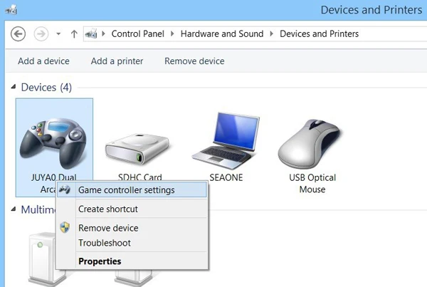 3. Кликните правой кнопкой мыши и выберите «Настройки игрового контроллера».