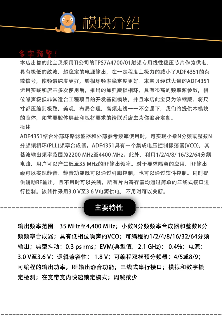 Этот модуль снимается для ADF4351 полную версию 499 юаней, в том случае, если вам нужны другие версии, просьа связаться по обслуживанию клиентов после внесения изменений.