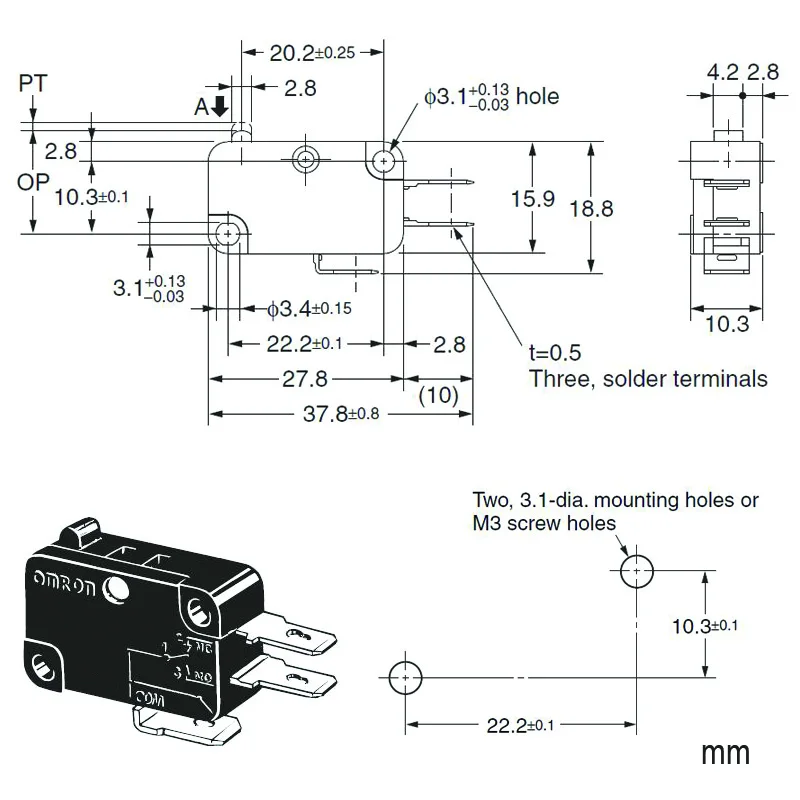 10 шт. оригинальные микропереключатели Omron V-15G-1C25-M .187"