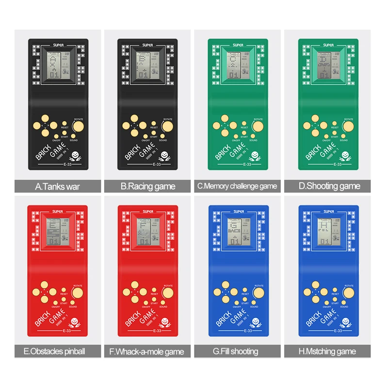 Верните эти дни с помощью этих портативных электронных игрушек с ЖК-дисплеем! Портативная игра Размером 7,5 дюйма и поставляется в восхитительном разнообразном цвете. Портативная игра имеет множество классических Вариационных игр, начиная с захватывающей игры Тетрис, танков, кирпичного выключателя, змеи и многого другого.