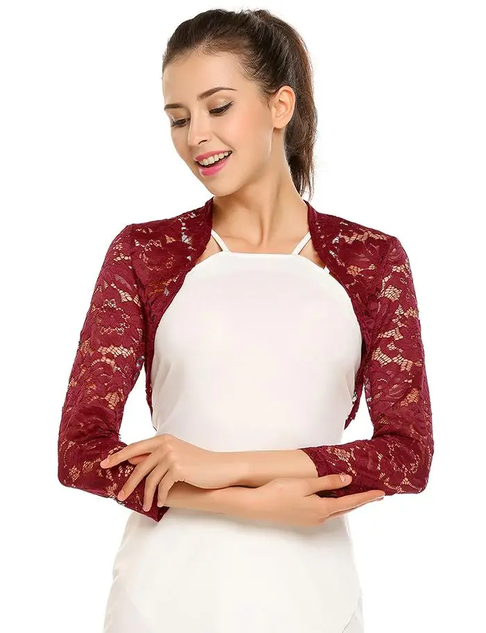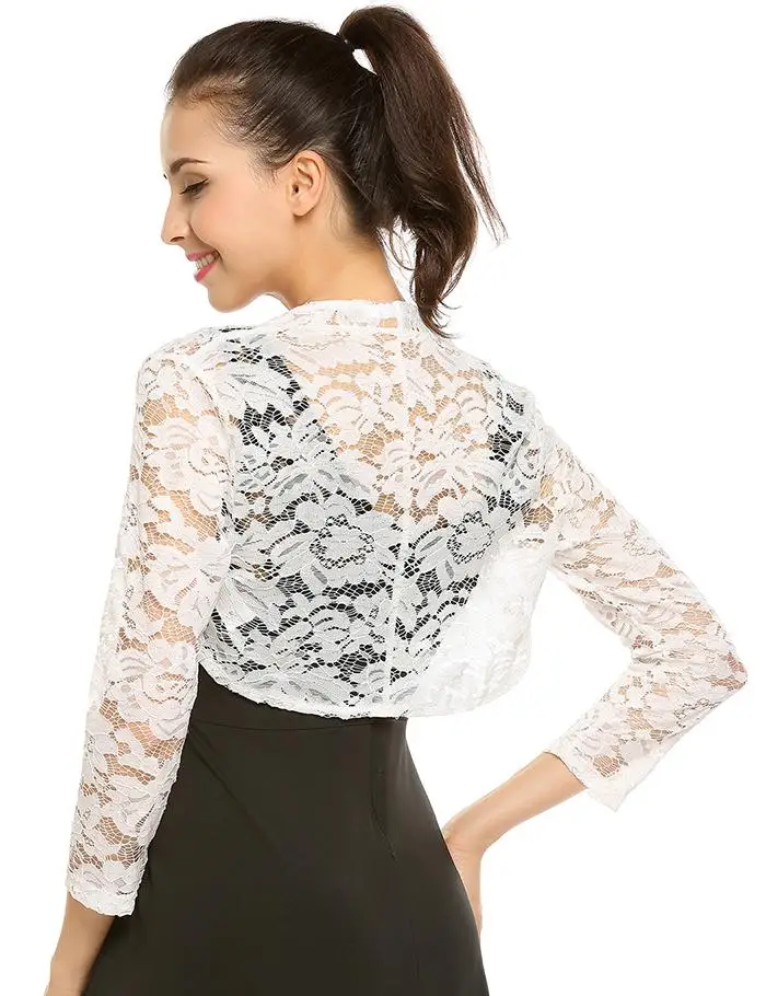 [Стиль]:FINEJO Лето Осень кардиганы 2017 новая мода повседневные женские 3/4 рукав цветочные кружева спереди открытый стежок тонкий Болеро блузка ТопПлотное пальто