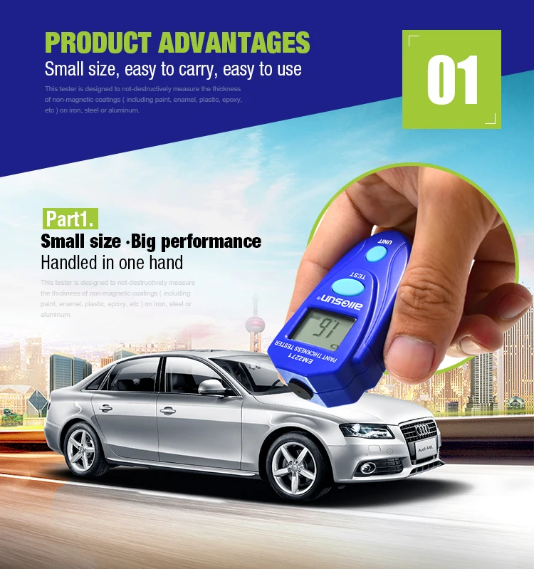 Этот тестер предназначен для неразрушающего измерения толщины немагнитных покрытий (в том числе краски, эмали, пластика, эпоксидной смолы и т. д.) на железе, стали или алюминии.