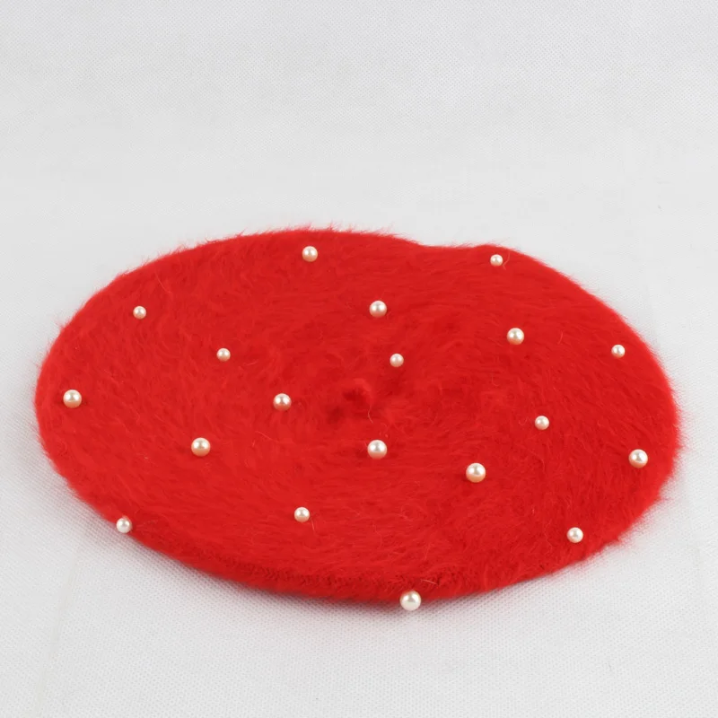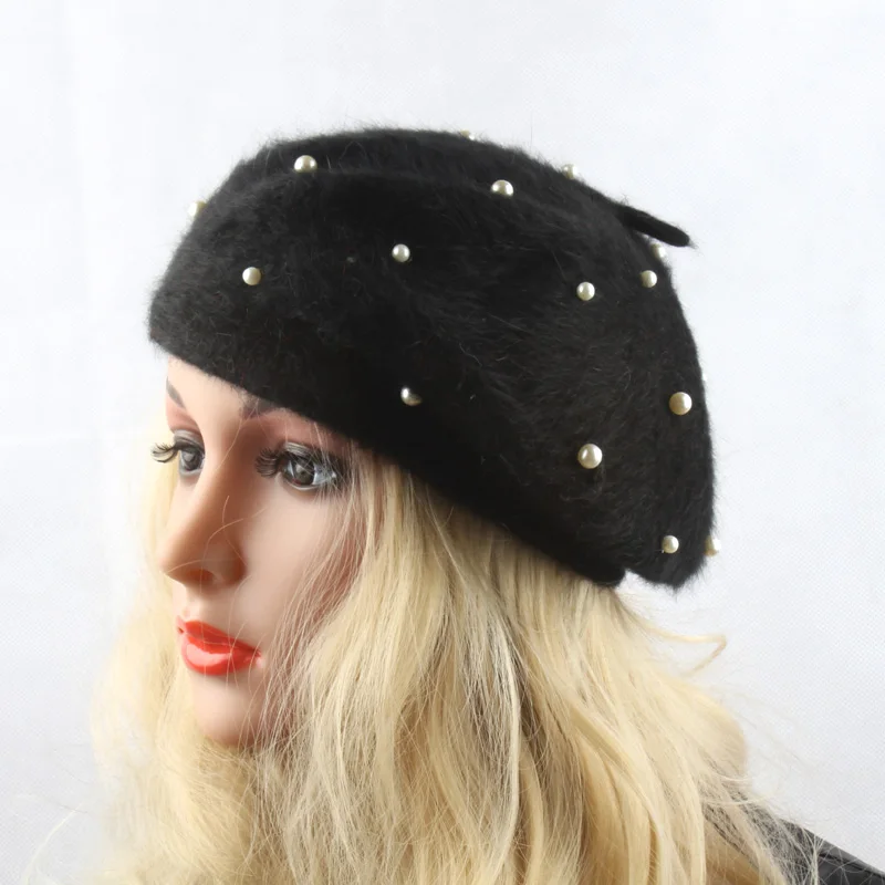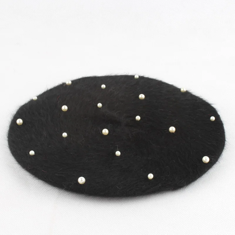 Женский вязаный берет HEALCOLD, шапка из кроличьего меха, украшенная жемчугом, женские береты