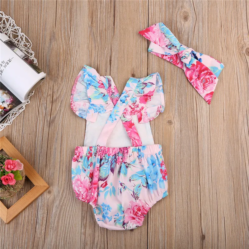 Pudcoco/боди для новорожденных девочек от 0 до 24 месяцев, bebe, боди с цветочным принтом для девочек + повязка на голову, одежда для детей, Детский сарафан, одежда, roupas