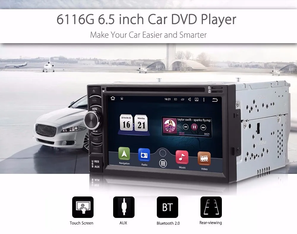 6116G Автомобильный dvd-плеер с ОС WinCE 6,0. 6,5 дюймовый TFT lcd сенсорный экран обеспечивает большой визуальный опыт. Вы можете наслаждаться любимым фильмом в любое время и в любом месте.