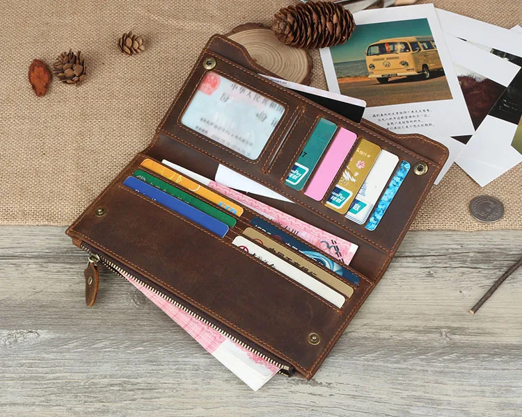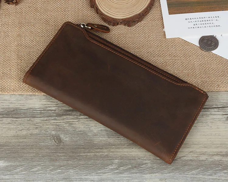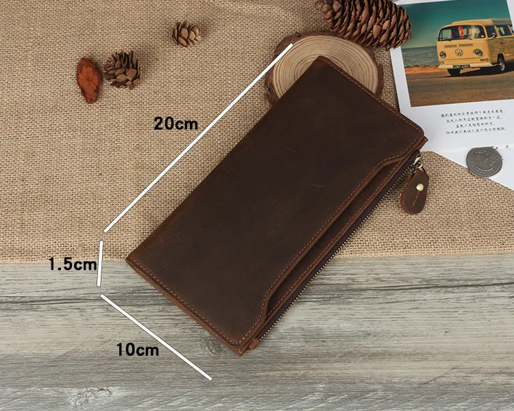 100% классический кошелек из натуральной кожи, лучшие мужские кошельки из кожи Crazy Horse, длинный винтажный Модный мужской кошелек для мужчин 4074 -Материал: Натуральная Воловья кожа/кожа с натуральным лицевым покрытием Crazy horse -Размер: 19,5x10x2 см/7,7x3,9x0,8 дюймов -Цвет: коричневый -Структура: 11 держатель для карт, 1 удостоверение личности, 1 карман для монет на молнии, 1 карман для авиа-билетов, 2 отделения для наличных -Емкость: может вмещать 20 банкнот, монет, кредитную карту, sim-карту, авиаперелет и телефон (например, iPhone 7). -Использование: двойной длинный кошелек, мужской кожаный кошелек, винтажный Стандартный кошелек, держатель телефона ручной работы, держатель для карт -Вес: 0,15 кг Полезные советы: ★Как светильник съемки, дисплей и различные партии продукта причины, предметы и фотографии могут быть некоторые различия, пожалуйста, в натуральном виде превалируют. ★Из-за ручного измерения, рисунок показан только для справки. Возможна погрешность в 1-2 см, если вас это не устраивает, пожалуйста, не покупайте. ★Для кожи crazy horse легко получить царапины при ежедневном использовании. Но кожа станет ярче в течение нескольких дней. Это дикий и винтажный стиль. Если вы не против царапин, это не хороший выбор для вас, чтобы купить этот стиль кошелька.