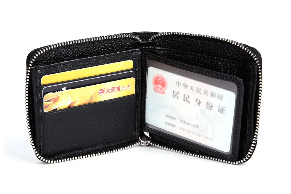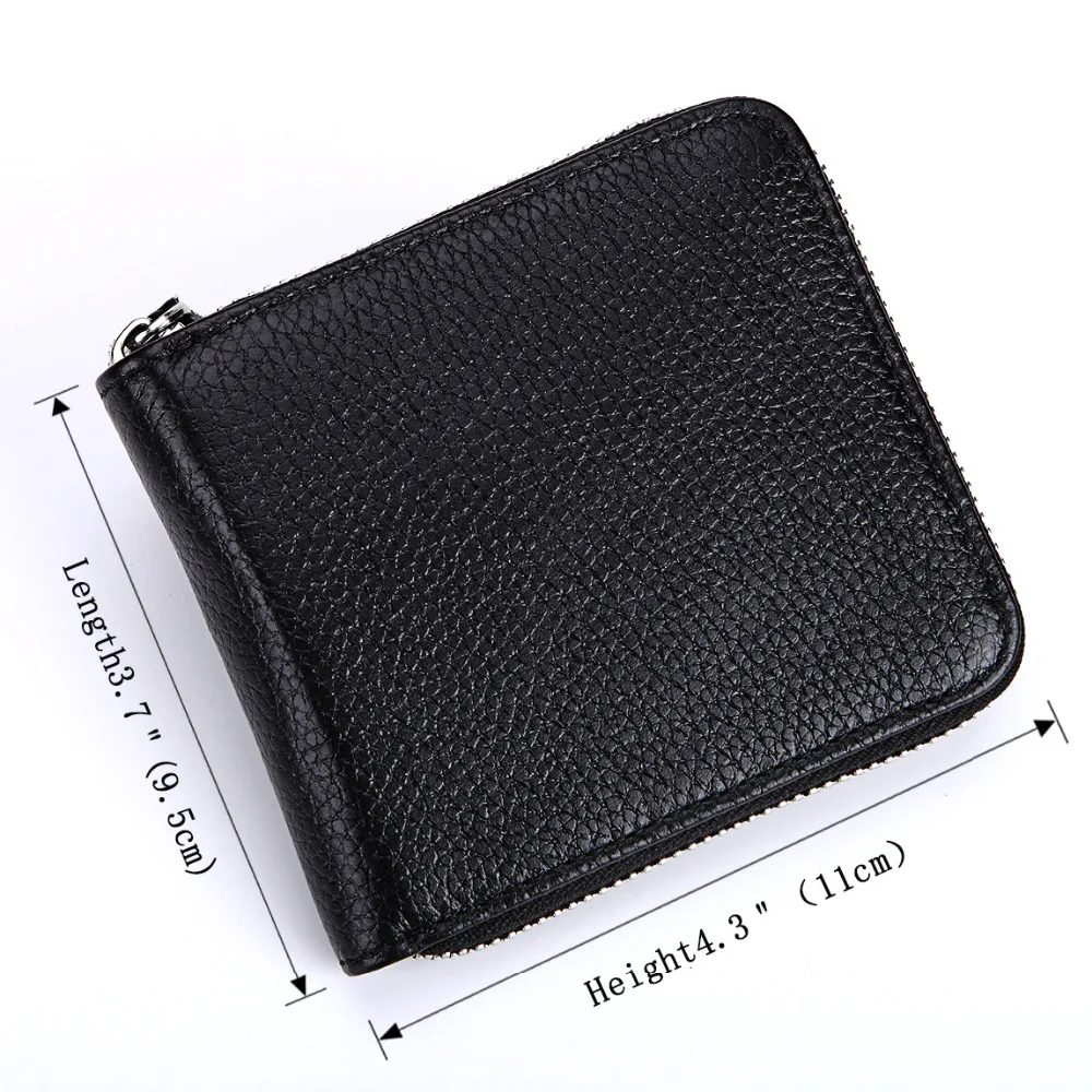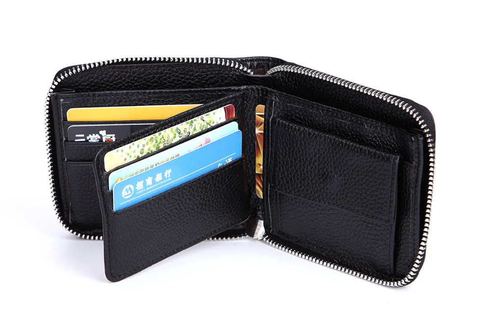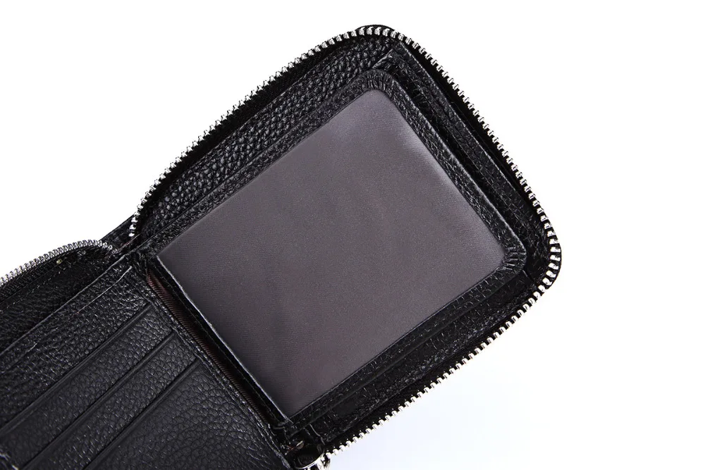 Brand Man Cow Genuine Leather Wallet Wallet Male Zipper Around Purse with Coin Pocket Black Business Carteira Masculina 2187# -Material: first layer cow genuine leather/top crazy horse leather -Dimension: 11x9x2cm/4.3x3.5x0.8inches -Structure: 6 credit card slots, 1 ID widnow, 1 snap coin pocket, 1 bill compartment -Capacity: can hold bill, 6 cards, coins, photo and keys. -Weight:0.12kg -Warm Tips : ★As the shooting light, technology and displays reasons, objects and photos maybe some differences, please in kind prevail. ★Due to manual measurement, the figure shows for reference purpose only. Have 1-2 cm Error,if you Mind,please don't buy. ★For crazy horse leather, it is easy to get scratch in daily use. But the leather will get brighter by days go on. It is of wild and vintage style. If you mind scratch, it is not a good choice for you to buy this style of wallet.