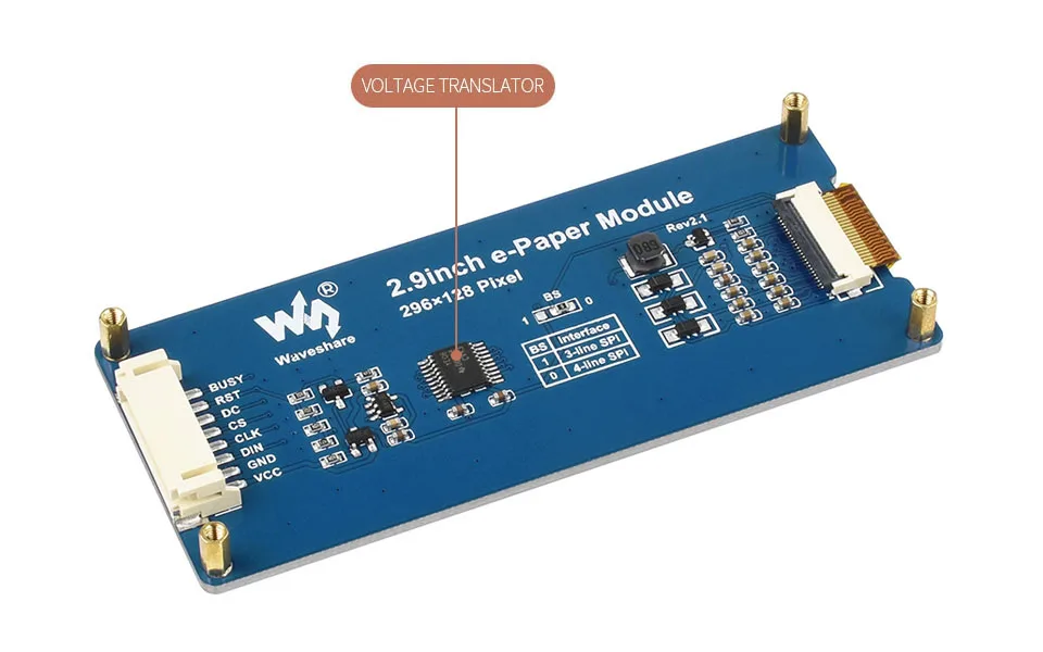 Рабочее напряжение3,3 В/5 ВЦвет дисплеяКрасный, черный, белыйИнтерфейс3-проводной SPI, 4-проводной SPIСерая шкала2Габаритные размеры89,5 × 38 ммВремя полного обновления15sРазмер дисплея66,90 × 29,06 ммМощность обновления26,4 МВт (тип.)Шаг точки0,227 × 0,226 ммТок в режиме ожидания<0,01 мА (почти нет)Разрешение296 × 128 пикселейУгол обзора> 170 °Преимущества EINK