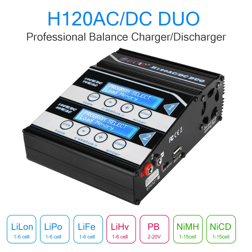 HTRC H120 двойной выход 50 Вт/70 Вт 100 Вт * 2 10A AC/DC RC Баланс Зарядное устройство/Dis зарядное устройство для Lilon/LiPo/LiFe/LiHV/Pb батарея