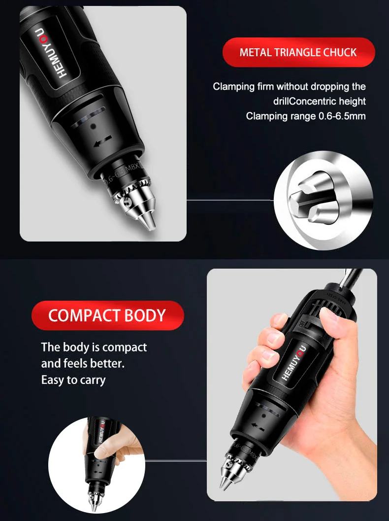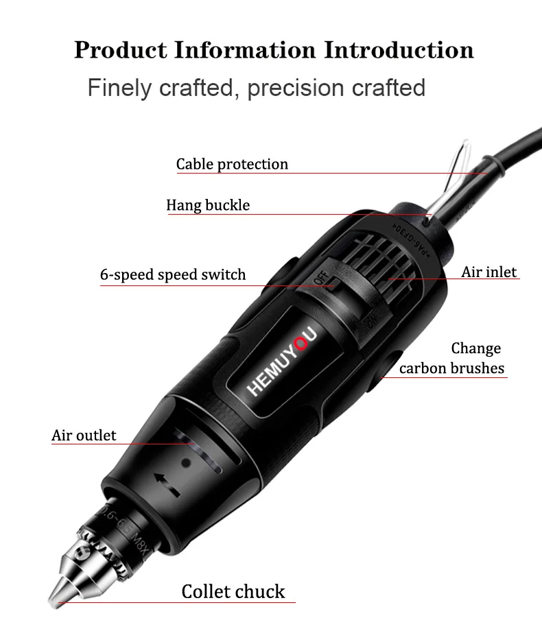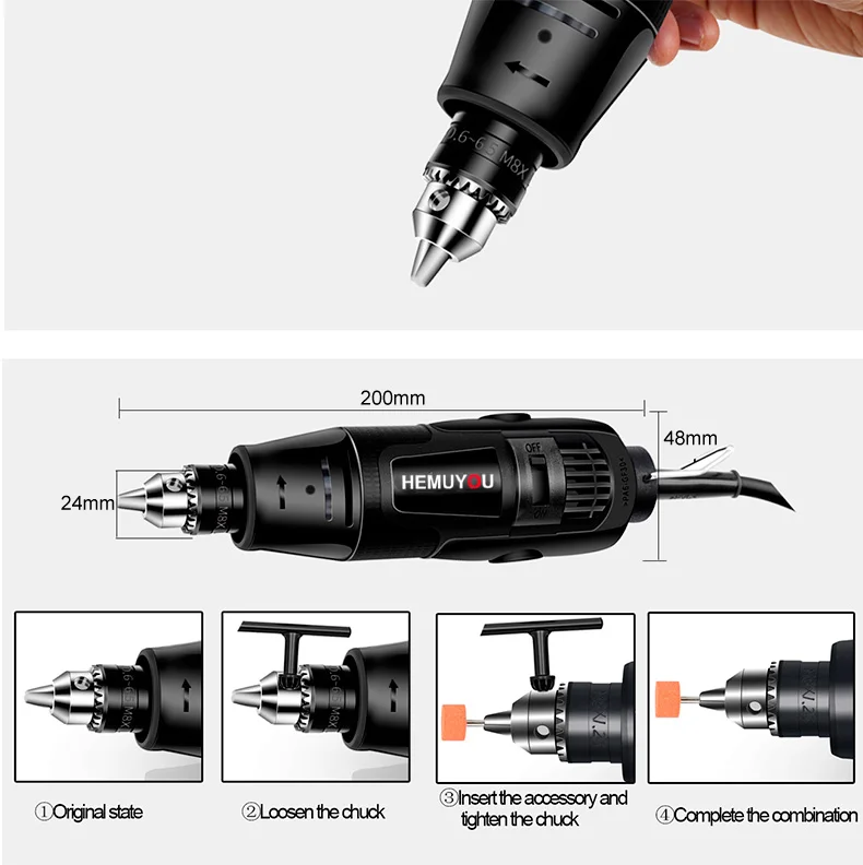 Диаметр зажима 3,2 мм, электрическая дрель может соответствовать универсальному патрону; Совместимость с различными аксессуарами для удовлетворения ваших различных потребностей
