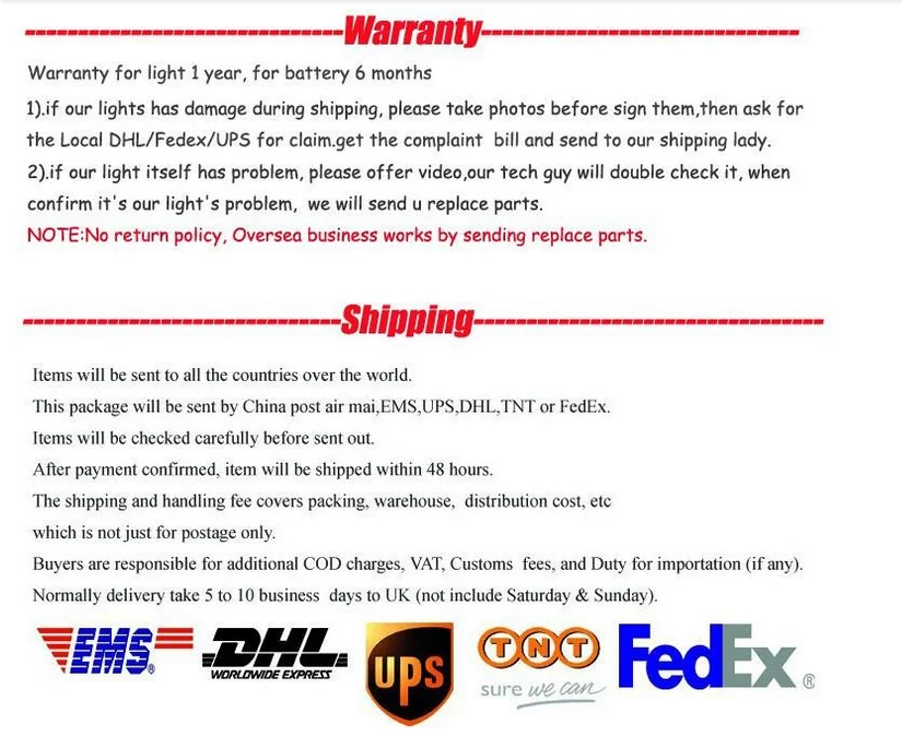 Q4. Как вы грузите товаров и сколько времени занимает приехать?A: мы обычно доставку службой DHL, UPS, FedEx, TNT или. Обычно это занимает 3-5 дней, чтобы прибыть. Авиакомпании и морские доставка также необязательно.