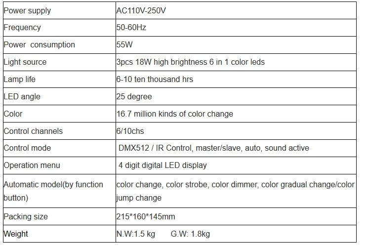 3 шт. 18 Вт индикатор батареи и беспроводной DMX & IR работает Клин par