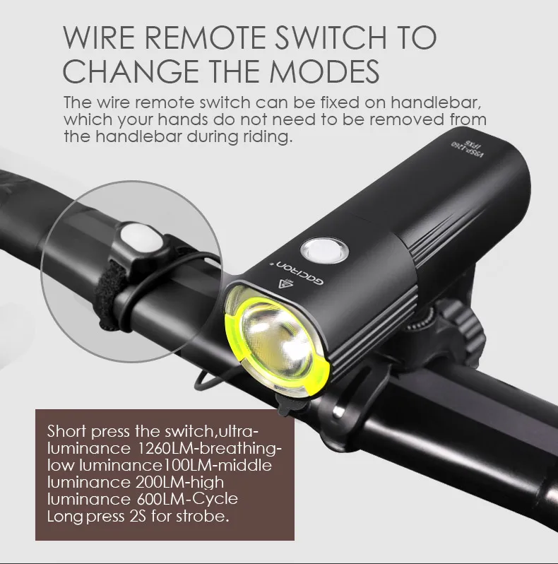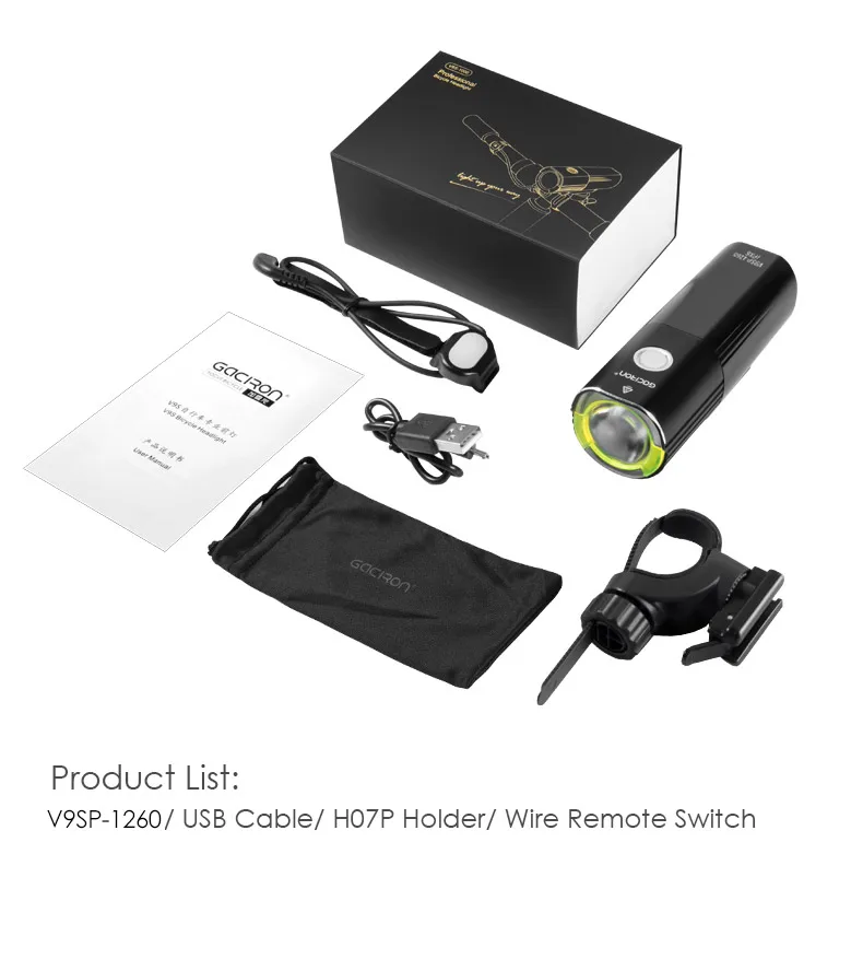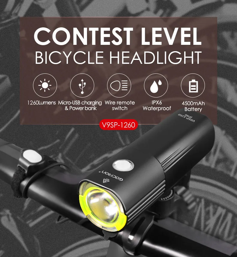 Велосипедная фара Gaciron V9SP 1260lm IPX6, водонепроницаемый светодиодный фонарь для кемпинга и велоспорта, USB Перезаряжаемый внешний аккумулятор, Аксессуары для велосипеда