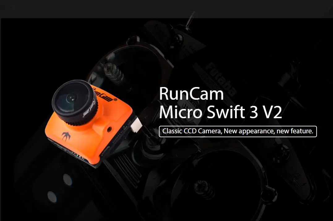 31 January 2022Show moreOpen 1 reviewDescription RunCam's popular Micro Swift fpv camera updated with full sized lens and built in control through UART port. Convenient, great image, and tiny size. Perfect for anyone building something with tight space or those looking to save a bit of weight. Specifications: Model: RunCam Micro Swift 3 V2 Image Sensor: 1/3" SONY Super HAD II CCD Horizontal Resolution: 600TVL Lens: 2.1mm (M8) FOV160° Signal System:: PAL Integrated OSD: Yes One Touch Scene Setting: Personal / Lightrax / Outdoor / Indoor / Cloudy / Twilight S/N Ratio: >60dB (AGC OFF) Electronic Shutter Speed: PAL: 1/50~100,000 Auto Gain Control (AGC): Yes Min. Illumination: WDR: D-WDR DNR: 2DNR Day/Night: Color/Auto/B&W Menu Control: Joystick Control / UART Control Switchable Power: DC 5-36V Current: 60mA@12V / 120mA@5V Net Weight: 6g(M8) Dimensions: 19mm*19mm*18mm