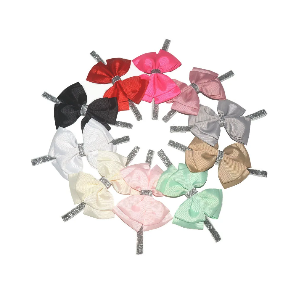 24 шт./лот, ручная работа, лента для волос, бант с нейлоновой повязкой для девочек, топ для девочек, завязанный бант, ободки для волос, аксессуары для волос