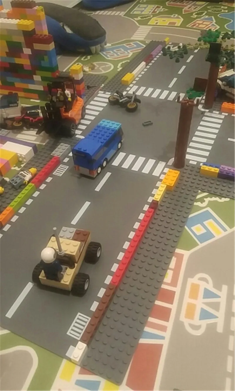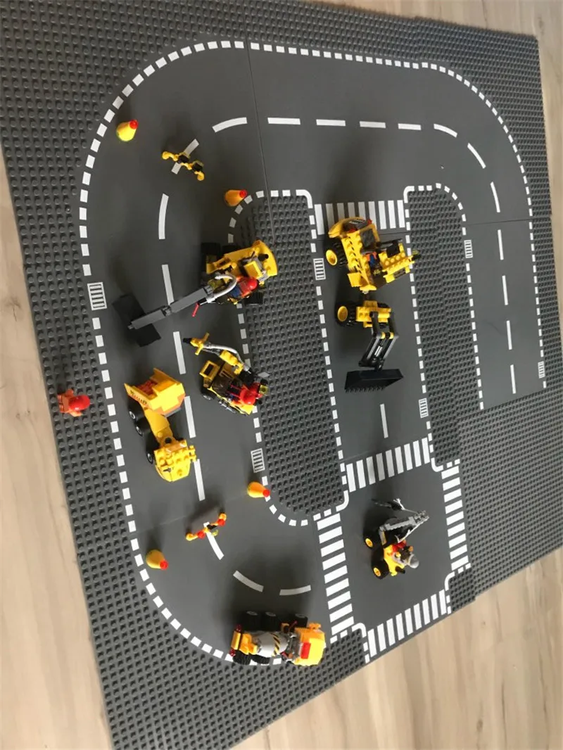 City Road Street Base Plate Straight Crossroad Curve Baseplate Baseboard Building Blocks Parts DIY Creative Bricks Kids Toys