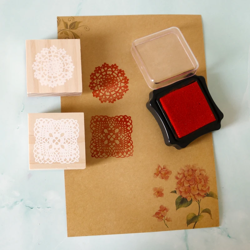 Name:1pc 4.5x4.5cm/5x5cm Lovely Wooden Lace Stamp Round Doily Stamp