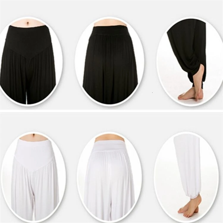 Товар: женские брюки для йоги Материал: Модал, бамбуковое волокно Цвет: черный Размер: S,M,L,XL,XXL,XXXL Стиль брюк: шаровары Характеристики: гладкая, не усадочная, Антистатическая Подходит: танец, Йога, Тай Чи и т. Д.Информация о размере: