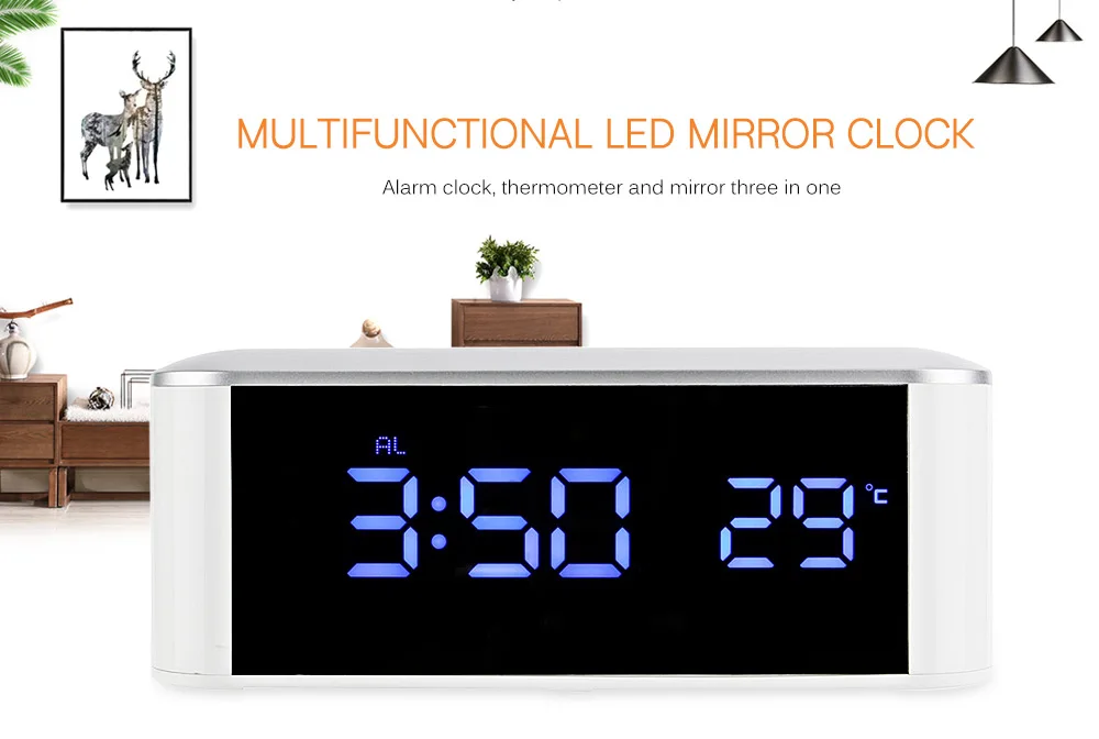 3 в 1 светодиодный электронный зеркальный будильник функция отображения температуры времени