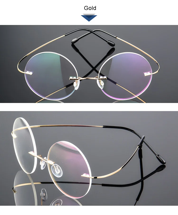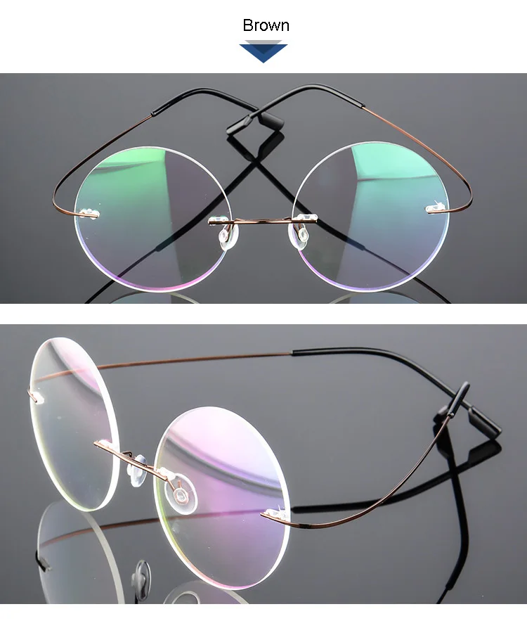 Ультралегкие очки без оправы мужские ультралегкие очки для близорукости Vintag круглые оправы для очков гибкие оптические очки из сплава по рецепту
