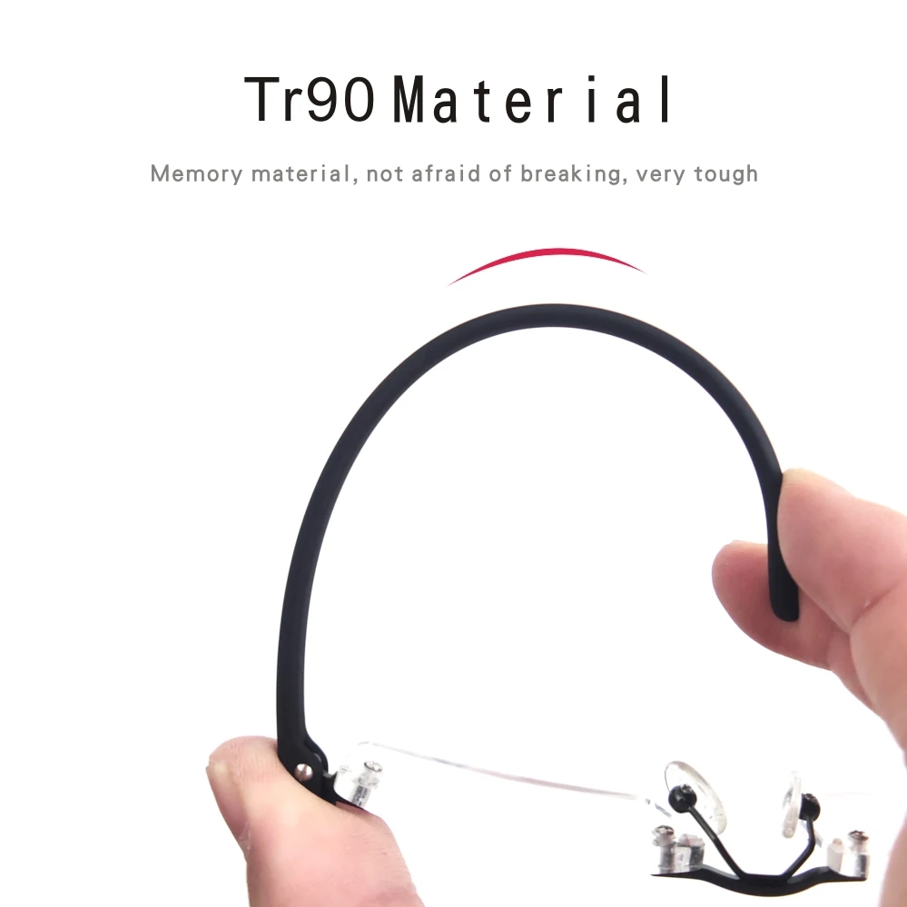 TR90 пластик Титан, не легко ломается, имеет хорошую функцию памяти, нескользящий мягкий, более удобный в носке