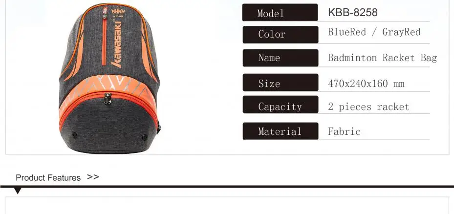 KBB-8258 badminton backpack*1 ( for 2 pcs badminton rackets OR 2 tennis rackets)