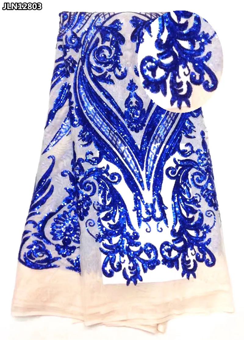 JLN128 королевский синий пайетки кружева ткани высокого качества французского чистого кружева африканских 2017 нигерийских кружевных тканей для вечеринок платья