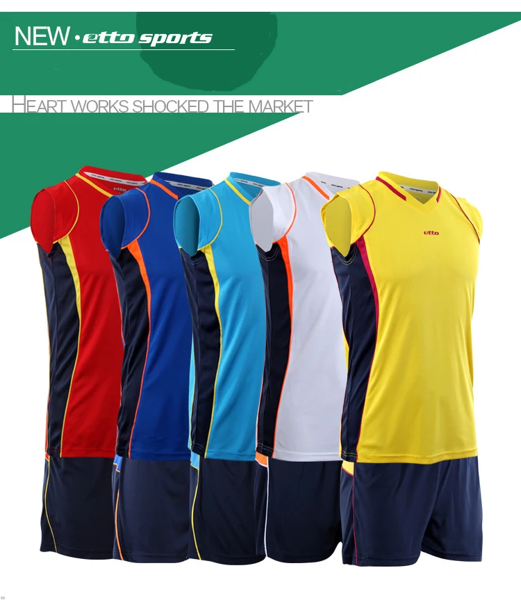 Etto Профессиональная Мужская Волейбольная форма без рукавов, полиэстер, дышащая, быстросохнущая, Voleibal, Джерси, костюмы, спортивные комплекты HXB002
