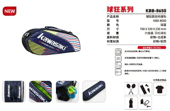 KBB-8650 badminton backpack*1 ( for 6 pcs badminton rackets OR 2-4 tennis rackets)