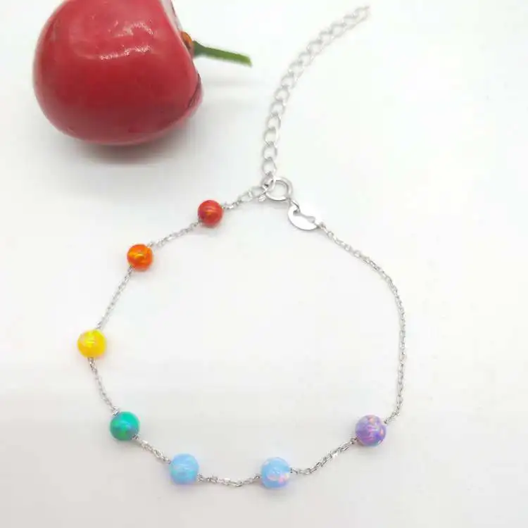Name:(1pc/lot)New Fashion Rainbow colors 4mm Opal Bead Bracelet With 925 Silver