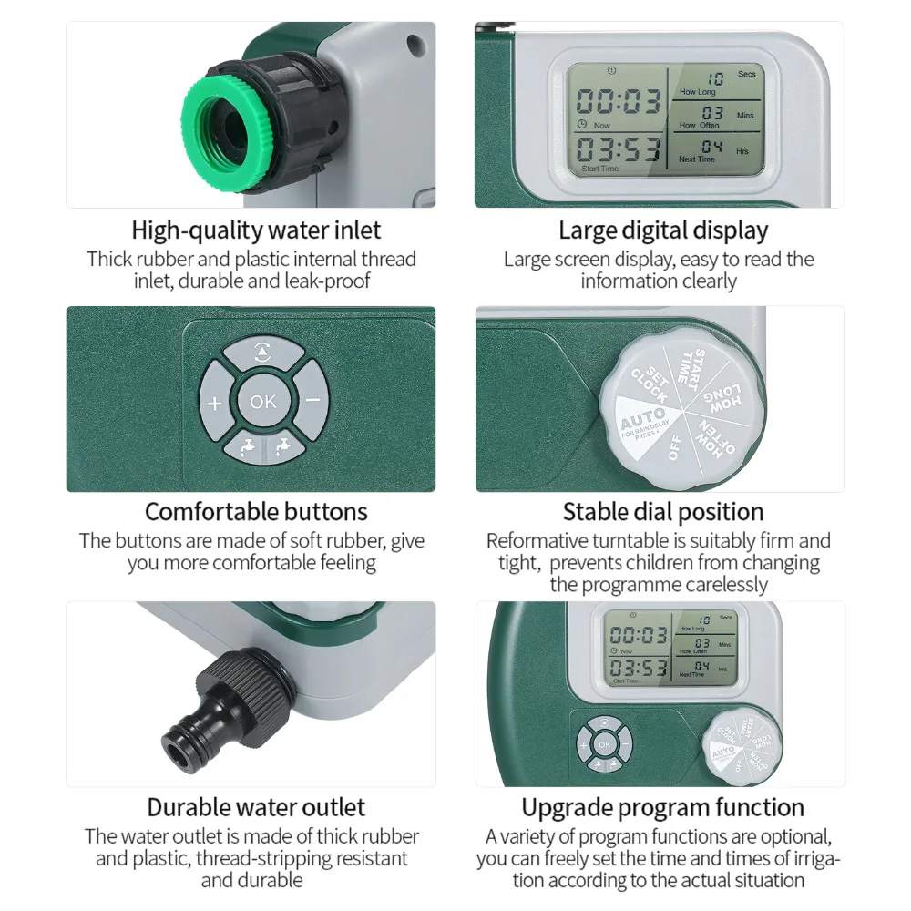 Простота установки: Нет необходимости в инструментах, просто установите таймер на кран/кран и подключите крепление шланга к штекеру, вот и все!