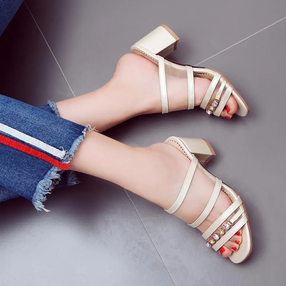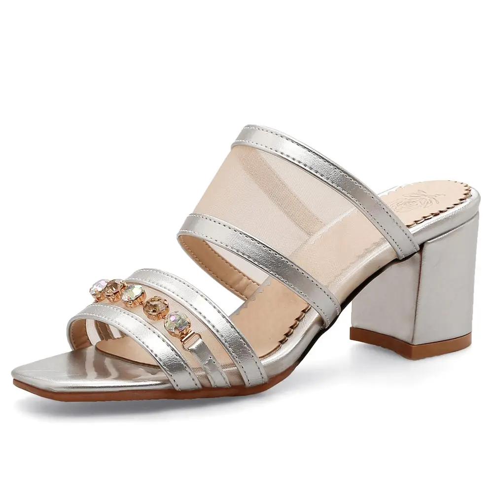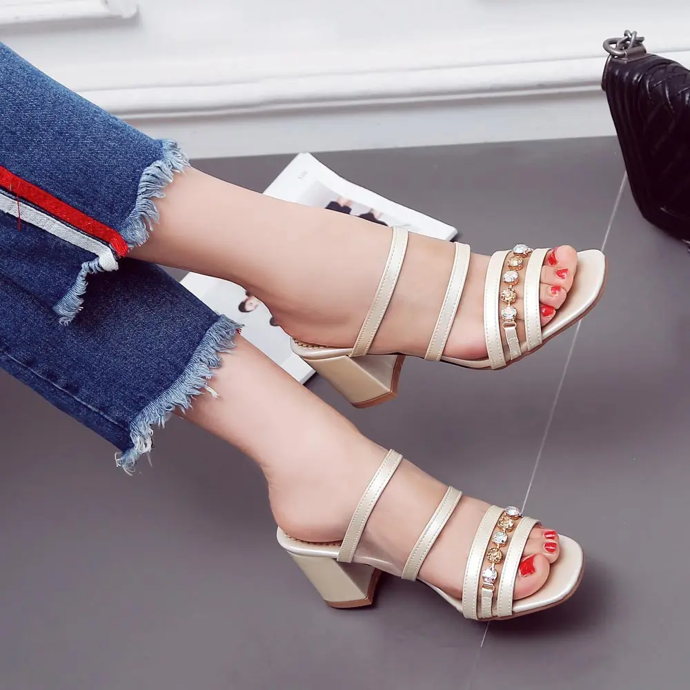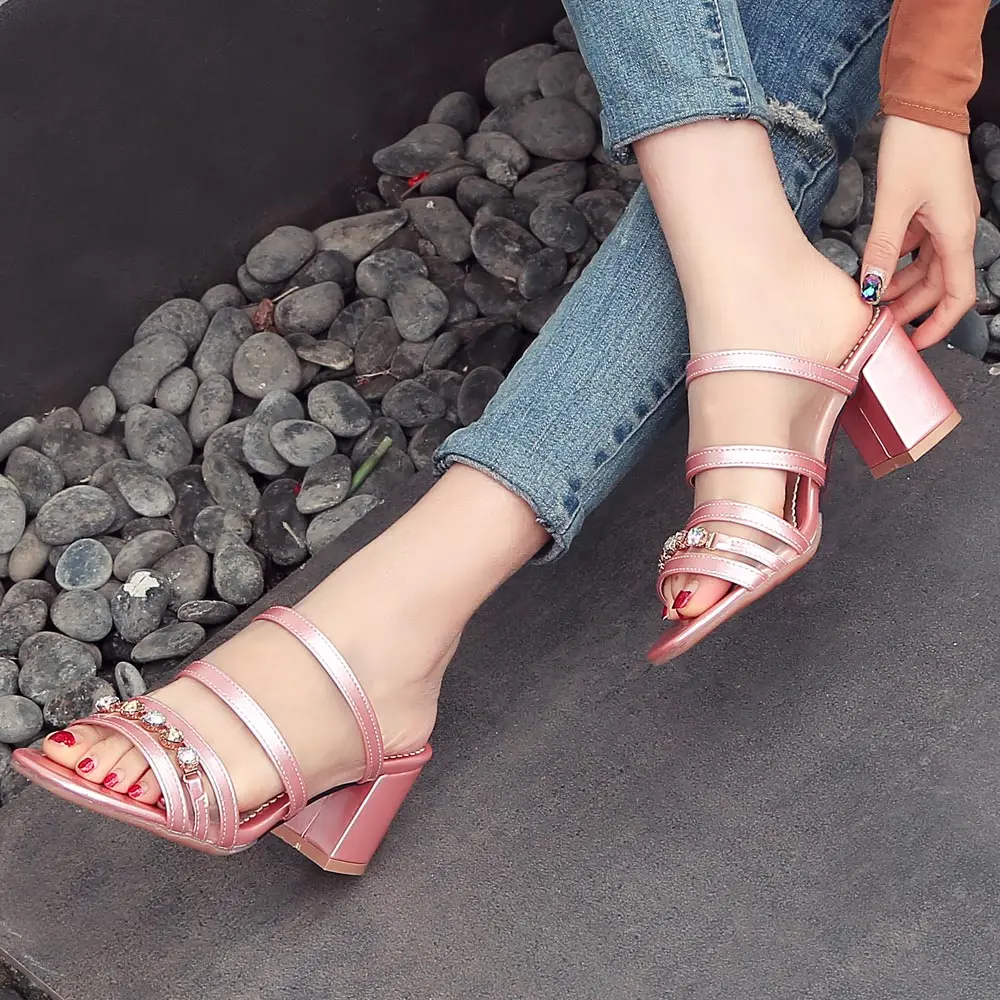 LLOPROST KE/женские босоножки; Милые модные туфли на толстом каблуке с открытым носком без застежки; Женские вечерние туфли; Цвет розовый, золотой, серебряный; MY351