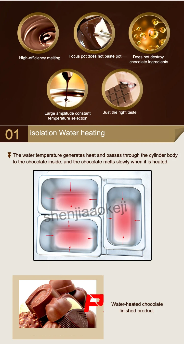 Коммерческая Машина для плавления шоколада трехцилиндровый ЭлектрическийШоколадный фонтан фондю горячего шоколада расплава горшок мельница машина 1 шт.