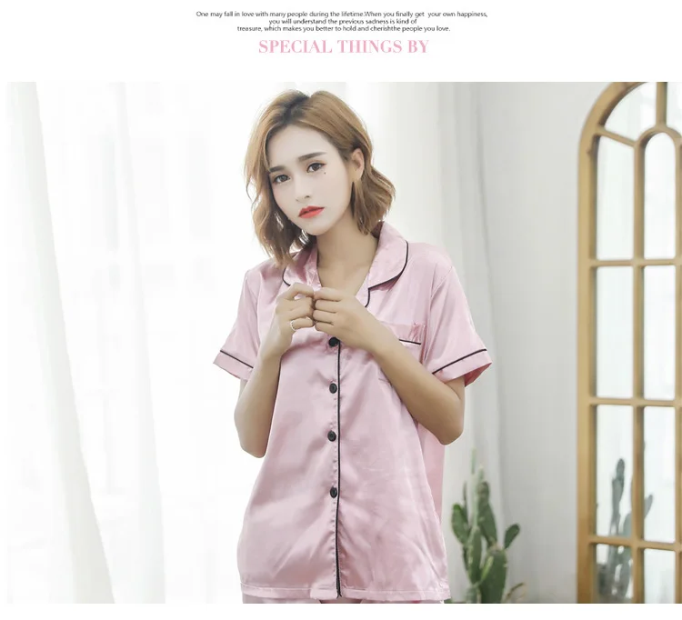 Шелковая пижама с коротким рукавом, костюм для женщин, Летняя шелковая пижама комплекты, атласная пижама, ночное белье, пижамы, максимальный размер 3XL 4XL 5XL, одежда для сна