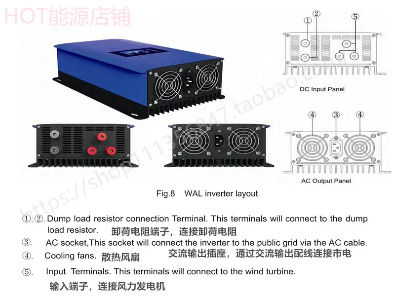 Примечание:Если ваше состояние ветра не очень хорошее, выходное напряжение ветровой турбины может быть недостаточно высоким для инвертора сетки, в этом состоянии, пожалуйста, не используйте этот инвертор.
