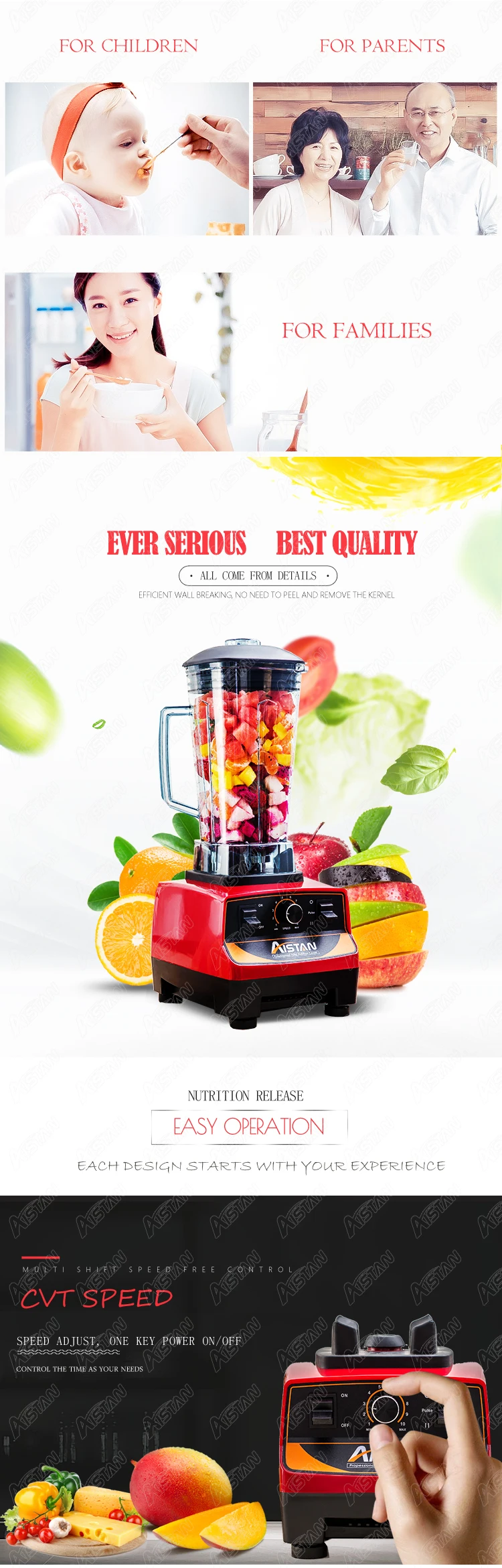 3. 3 л.с. мотор-Немецкая оригинальная моторная технология. 100% Медь интегрированная конструкция двигателя, 45000 скорости (об/мин) Убедитесь, что блендер может работать стабильно, низкий уровень шума, длительный срок службы, супер мощный. Уникальный дизайн может охладить двигатель быстро и действителен