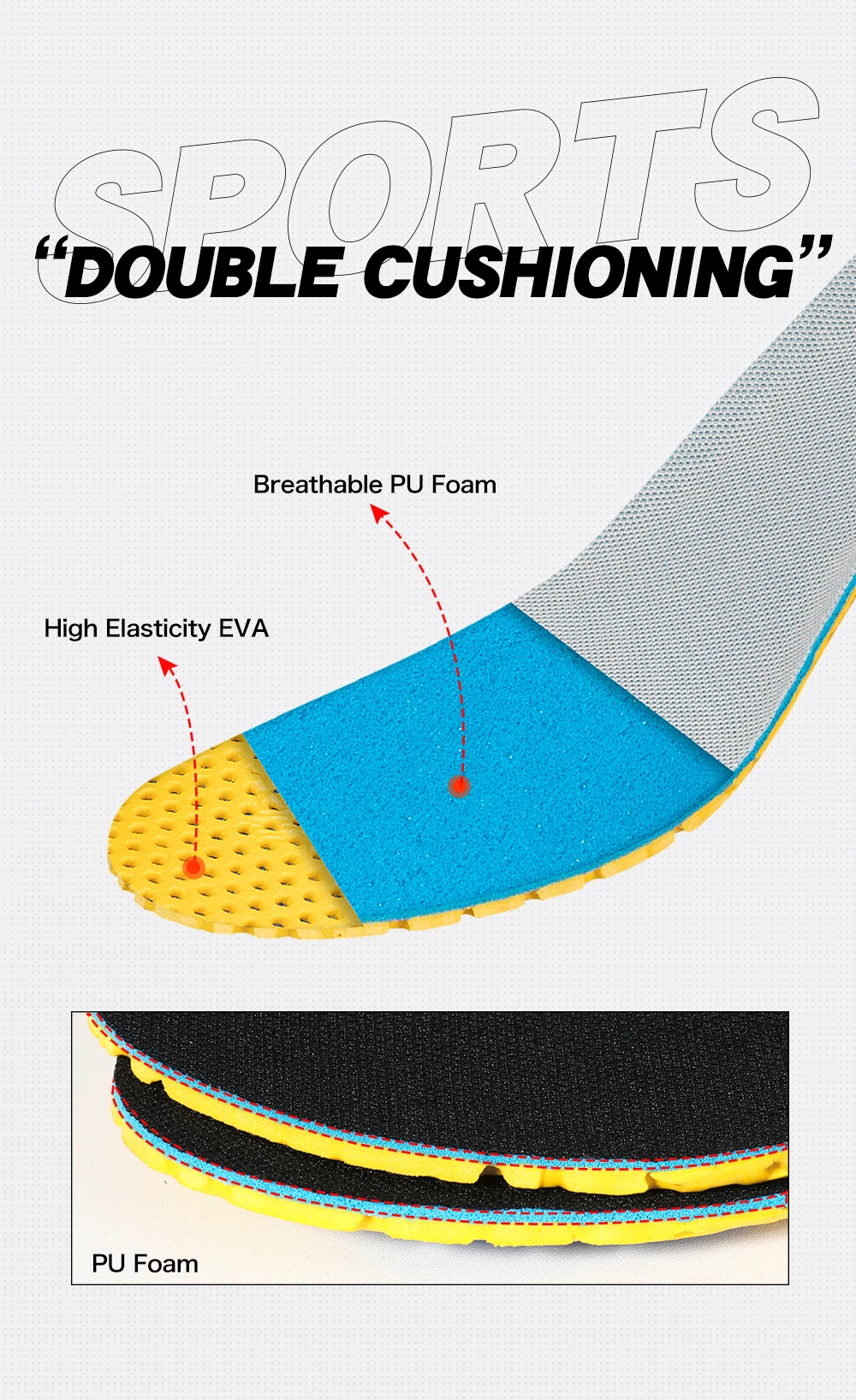 2. Материал: дышащая сетчатая ткань + Эва + пена с эффектом памяти + Ортолит