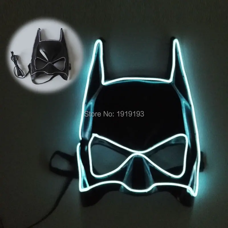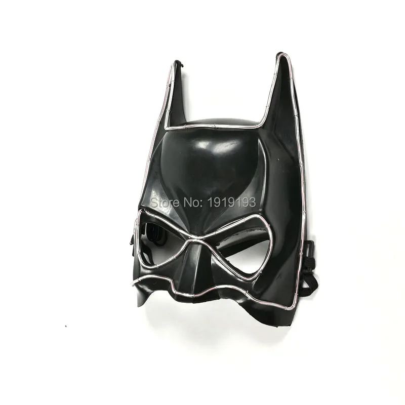-Название: маска Бэтмена -Тип: DC3V-Flashing -Питание от-постоянное включение: DC3V-Steady (2 батарейки типа АА). -Питание от звука: DC3V-Sound активный (2 батарейки ААА). -Комплект EL Mask не включает батарейки. -Функция-Постоянное включение: постоянное включение, медленное мигание, быстрое мигание, выключение -Функция-звук активный: устойчивый, мигающий, звук активный, выключен -Материал: ПВХ пластик + EL провод -Применение: вечерние, девичьи вечеринки, дискотеки, клубы, Haloween, дни рождения, фестивали и вечерние товарыПосылка в том числе