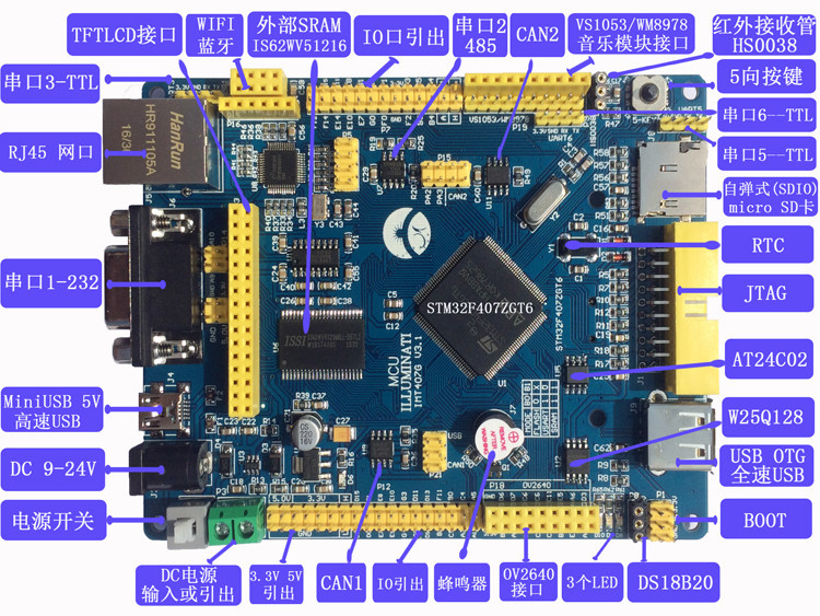 体形小巧,外设资源与接口却丰富,以下为升级版板载资源介绍 。
