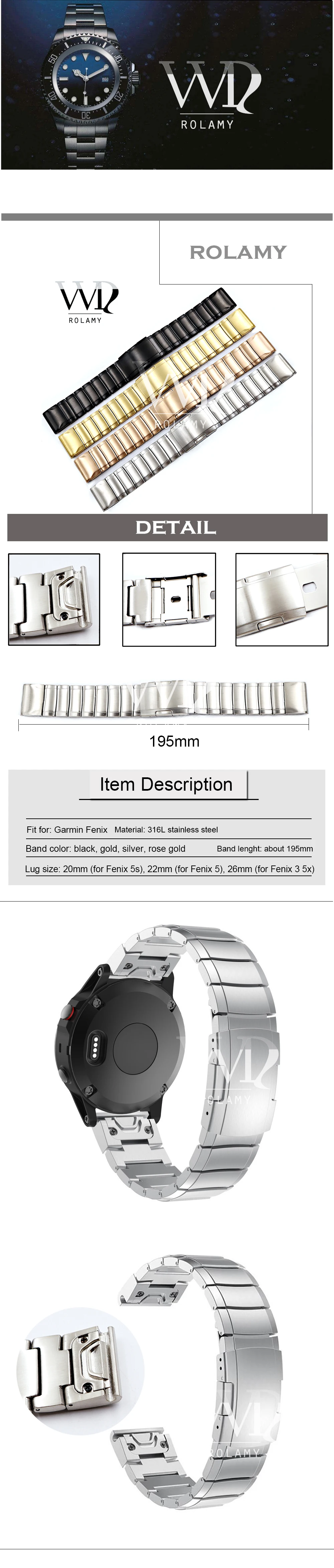 Размер наконечника: 20 мм (для Fenix 5s), 22 мм (для Fenix 5), 26 мм (для Fenix 3 5x)