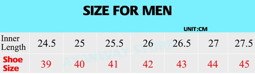 Notice:The data in this chart just tells how foot is suitable for which size to buy. It does not mean