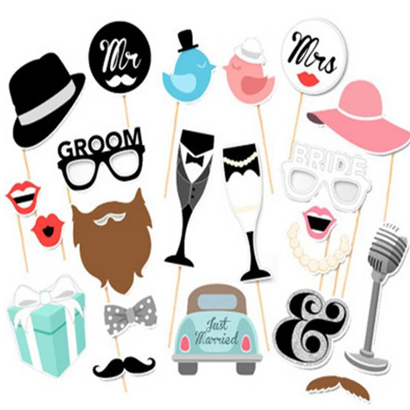 22 PCS DIY Mr Mrs Just Married Funny Photo Booth Props Bride Groom Wedding Decoration Party Supplies