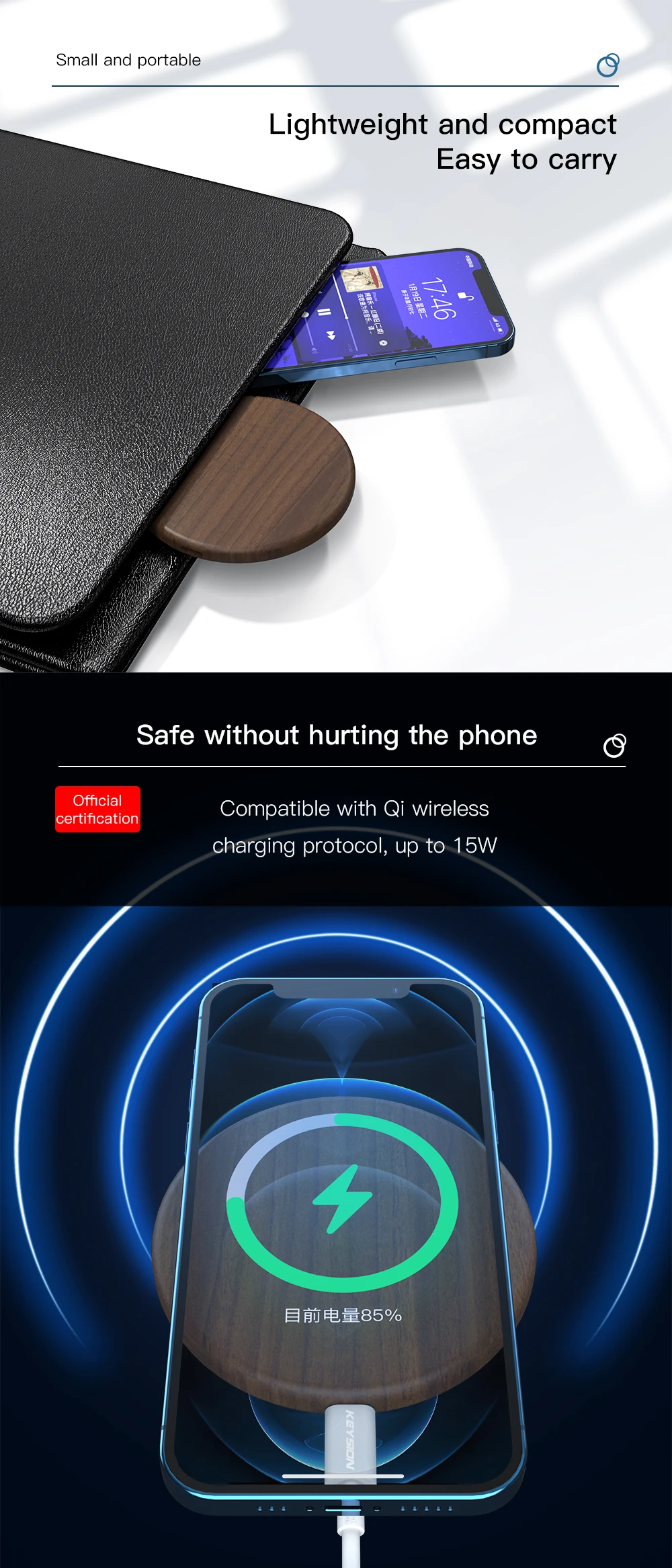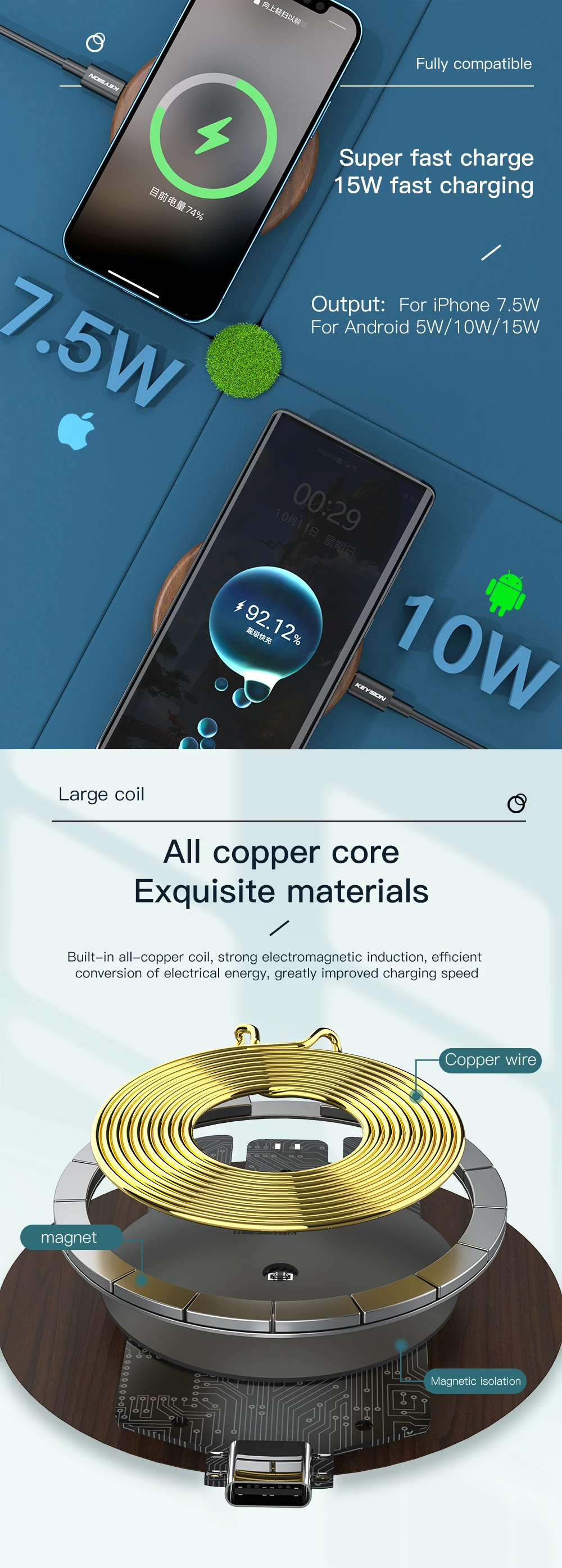 Особенности: Поддержка 4 различных режима беспроводной зарядки (15W 10W 7,5 W 5W), автоматически синхронизируется с выходную мощность в зависимости от ли телефон Поддержка s быстрой зарядки.