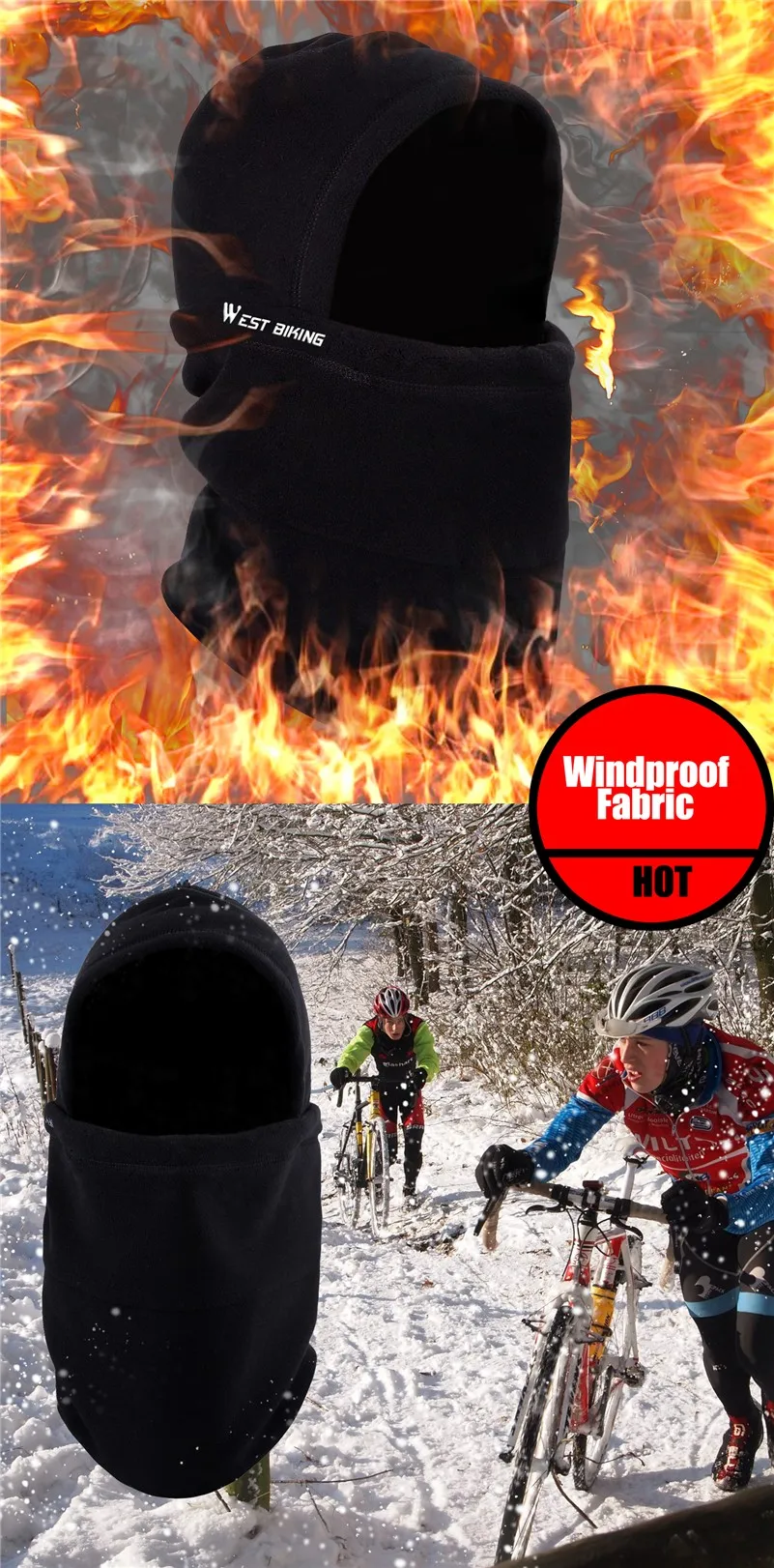 Name:WEST BIKING Cycling Cap Fleece Thermal Keep Warm Winter Bike Bandanas Hat Bicycle Face Mask Nylon Headgear Hooded Scarf Hats