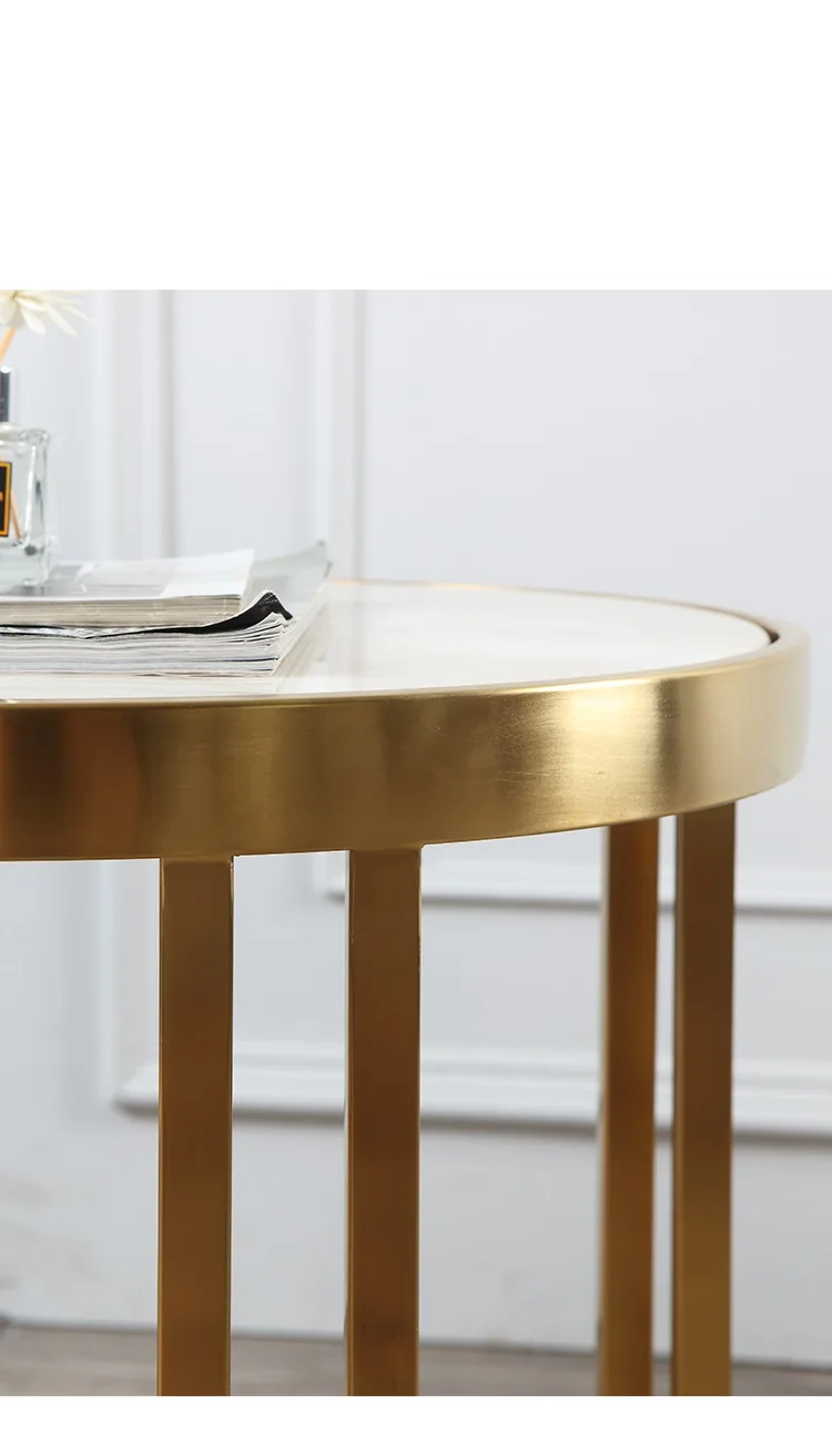 Stainless steel round marble edge side modern minimalist small coffee table sofa side table cabinet round table