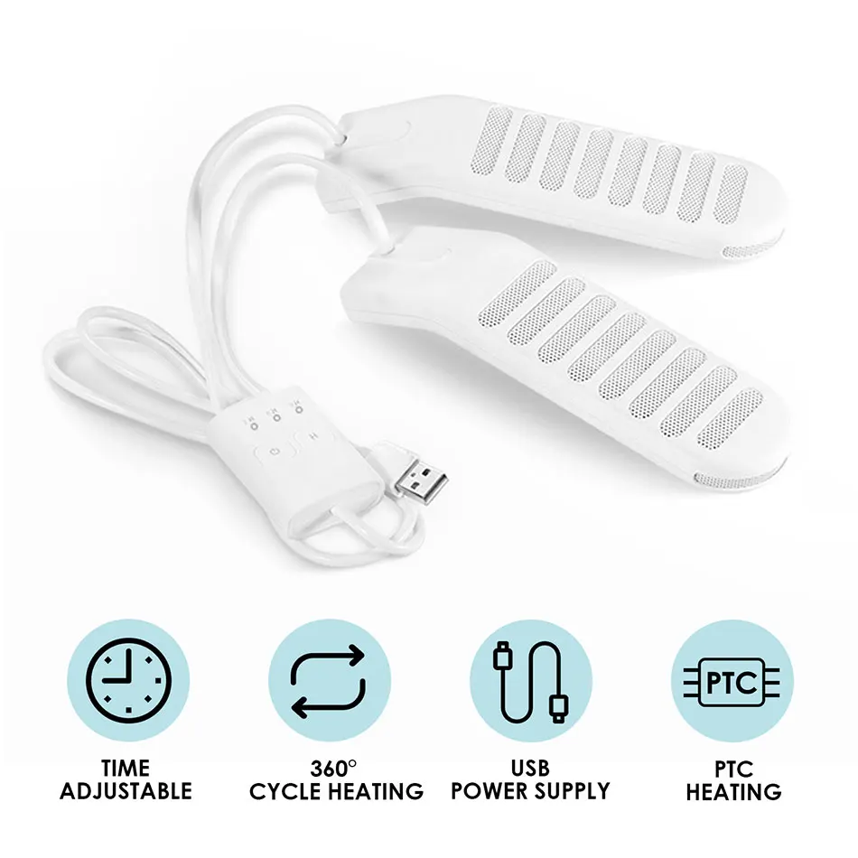 Описание Сушка, устраняет плохой запах и дезинфицирует обувь! Защищает вашу обувь от влажности! Ваши ноги никогда раньше не чувствовали себя так комфортно. Чудесный способ избавиться от неприятностей, связанных с повреждением обуви даже ночью, просто установите таймер на 3H/6H/9H для бесшумной сушки обуви, дезодорирования и стерилизации. Точный контроль температуры при 55-60 °C по технологии PTC для предотвращения перегрева во время использования. Вертикальные и горизонтальные все закругленные отверстия для обеспечения равномерного распределения нагрева. Портовый дизайн с usb-портом питания, который можно использовать дома или в автомобиле, легко упаковывать в переноску багажа для любого отдыха на открытом воздухе, идеальный аксессуар для путешествий в вашей жизни.