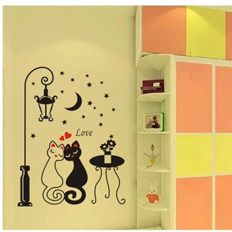 Черная любовь Кошка под уличной лампой дизайн фото искусство пилинг & палка стикер на стену