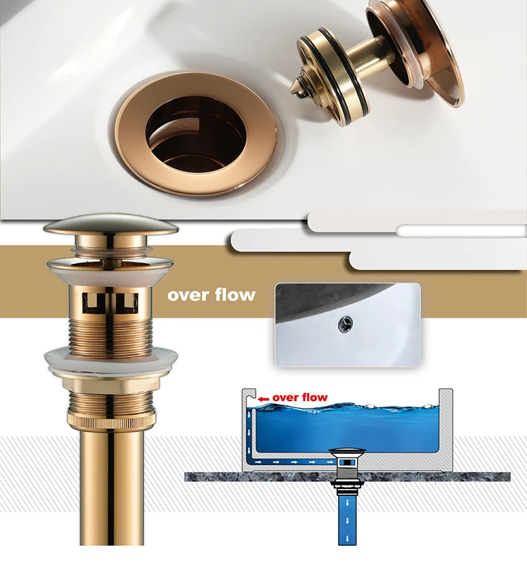 HIDEEP покрытие из розового золота латунный умывальник водоотвод запускающее устройство всплывающее Слив с переливом