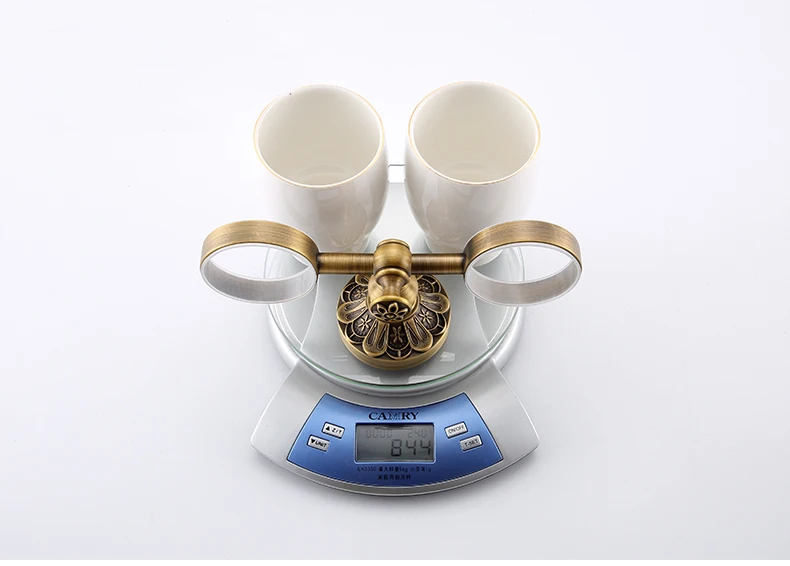 Античный стиль Твердый латунный настенный держатель с двойным стаканчиком, держатель для зубных щеток, европейская гостиничная коллекция, античная бронзаUSD 34,80/Шт.