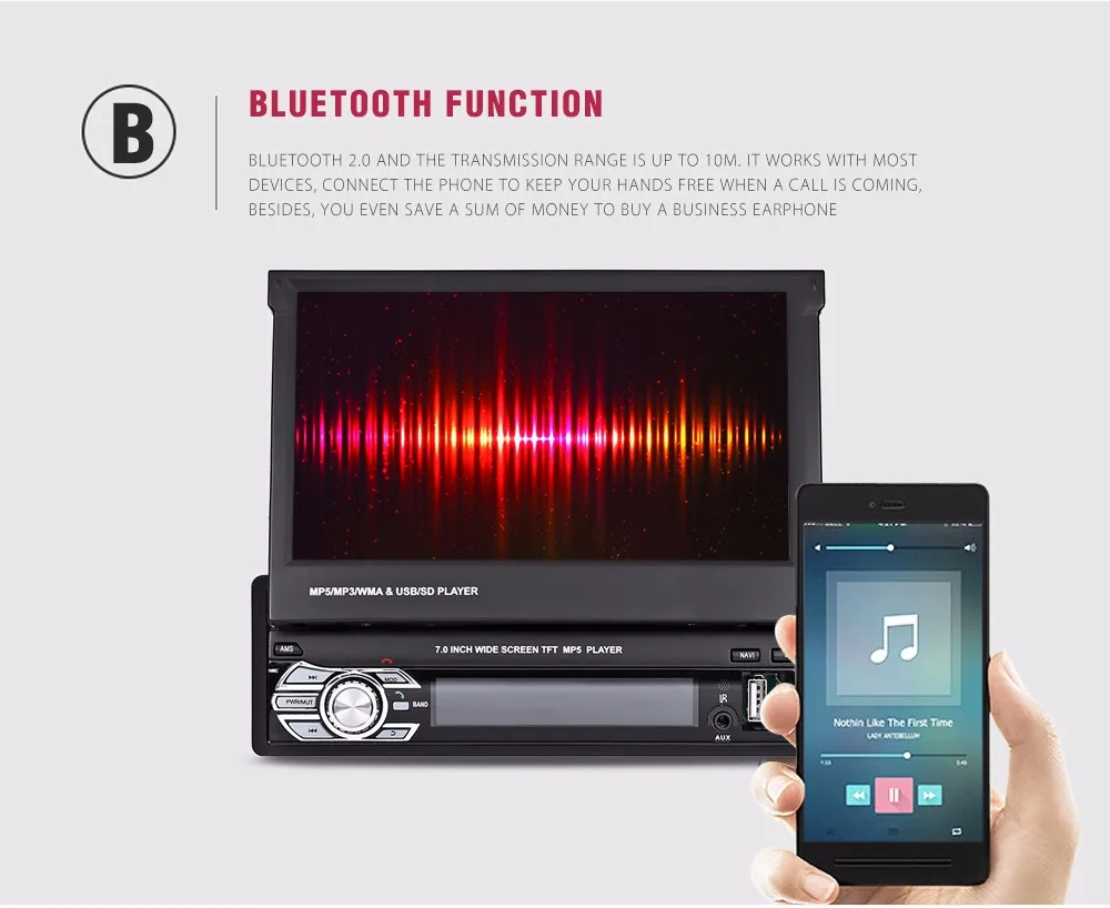 Large HD Screen: the resolution of the screen is 800 x 480, which is a relatively high definition for the 7 inch touch screen that is enough for you to watch movies. Link to headphones with Bluetooth, make sure not to interrupt the driver